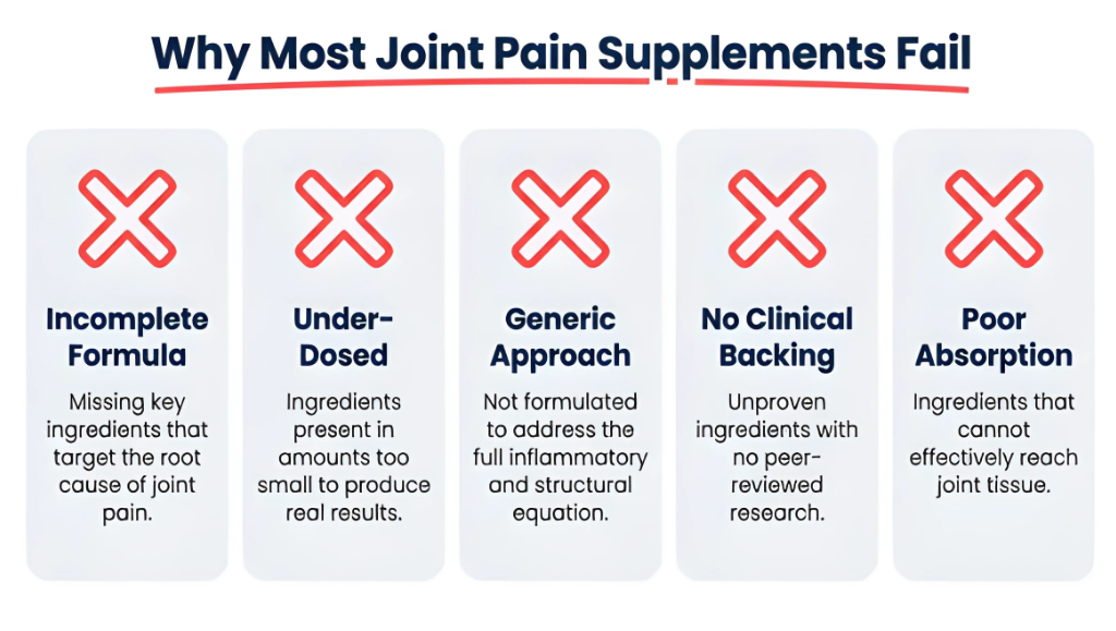To truly be the best joint health supplement, a formula must include ALL FOUR pillars of support. Without them, lasting results are simply not possible.